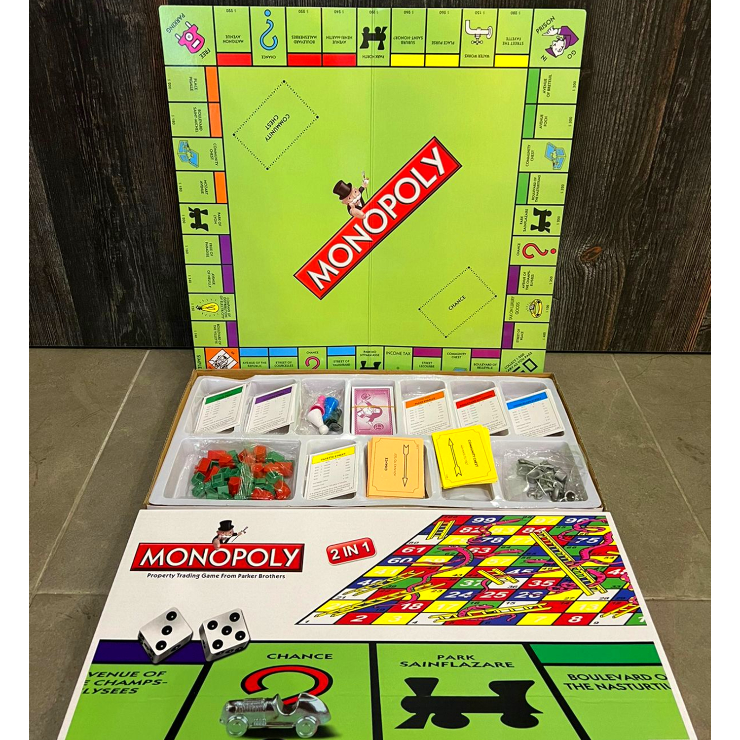 - Monopoly 2-in-1 comprises of both the Monopoly game and Snakes and Ladders.